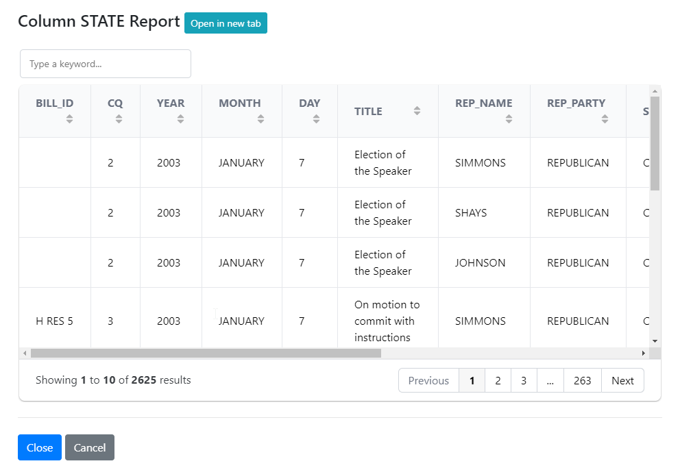 (Type a keyword... - lets you search the report for values)