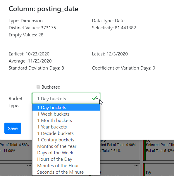 • Pct of Sel - the percentage of the filtered rows of this value in the column as it relates to the filtered rows