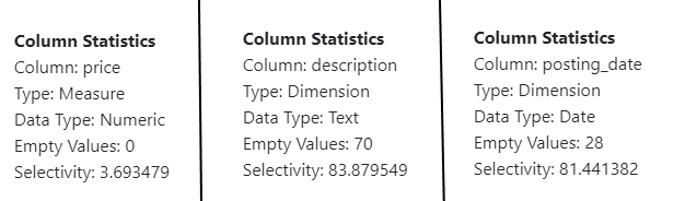 3. Column Statistics - statistics for the current column