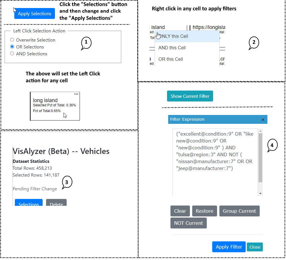 18. Click Filter - click in any cell to change the filter criteria, action based on Selections(see 7)