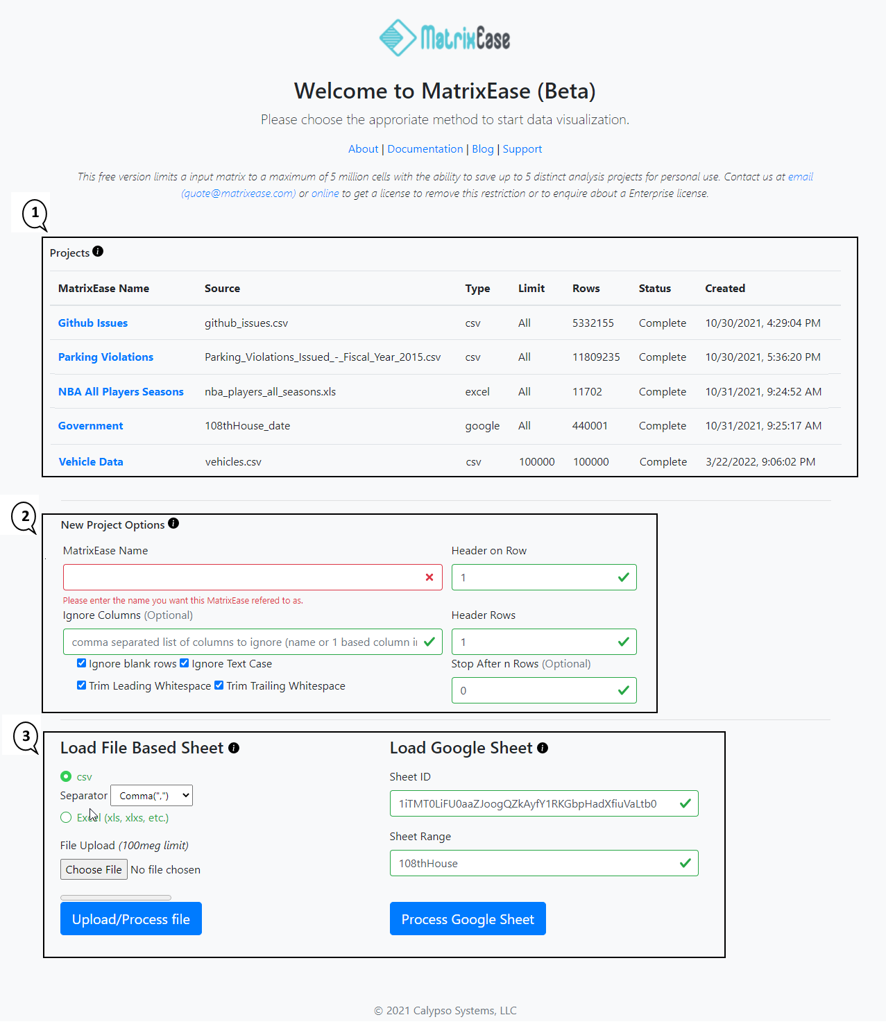 4. Upload/Process File - press this button to create a new MatrixEase project from the uploaded file